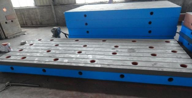 鉚焊平臺用于鉚焊工藝的基礎平板,工作面上有孔和T型槽,孔主要用來清理鉚焊時的一些鐵渣和焊接廢棄物,T型槽主要是用來固定焊接件。