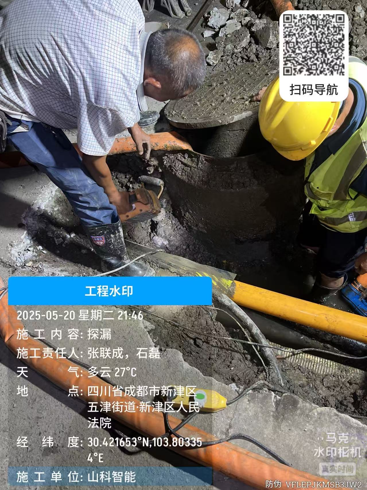 四川新津海天水司漏點周圍環(huán)境復(fù)雜,埋深較高,300口徑鑄鐵管道,埋深1.5米,周圍有煤氣管道和廢舊水管,極其影響判斷,依靠山科漏損漏損團隊的經(jīng)驗及先進設(shè)備,成功找到漏點,進行開挖。